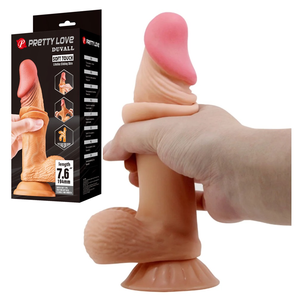 Feito de material de pele deslizante de camada dupla realista para uma sensação de vida, com tecnologia especial de dupla densidade para simular a sensação de um pênis ereto,apresenta uma pele externa macia e interna satisfatoriamente firme.