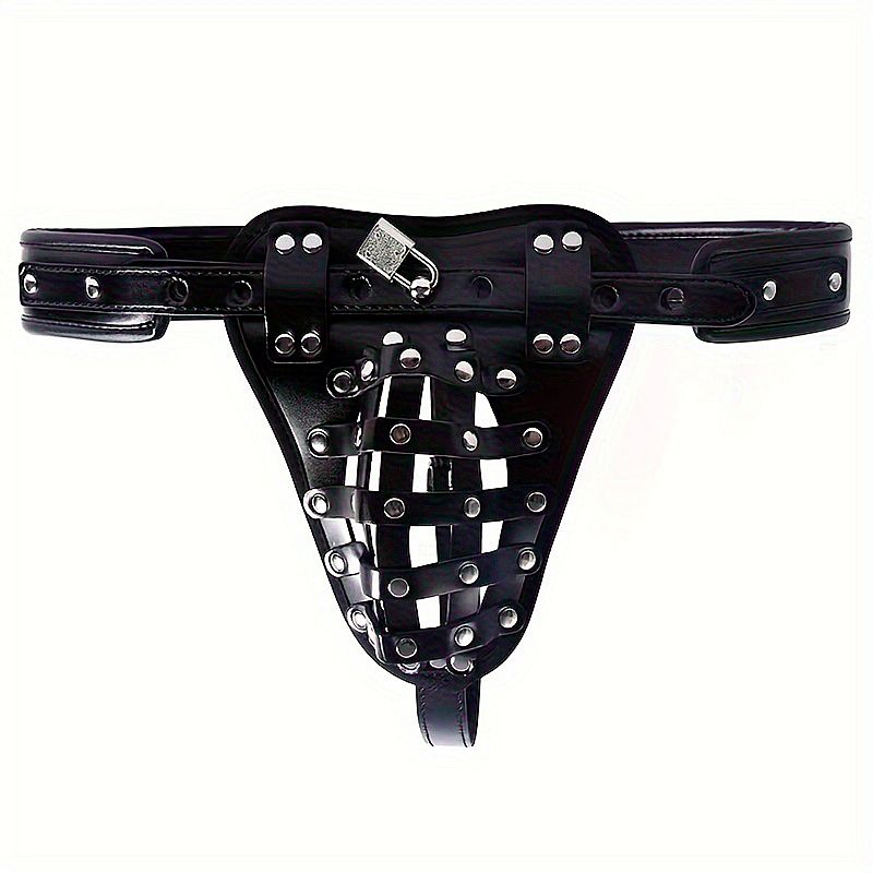 É um cinto de castidade masculino em couro com formato de cueca ajustável. Acompanha um cadeado metálico com chave para prender o anel no cinto. Mantenha seu parceiro dominado com este resistente cinto de castidade.