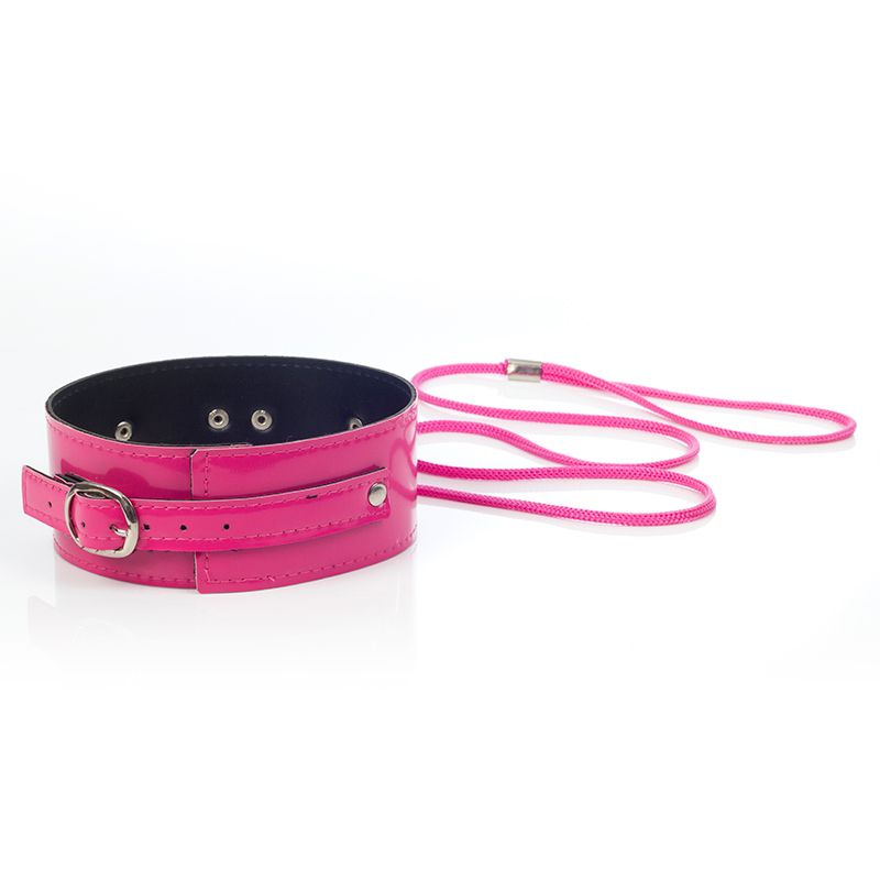 Para fantasias de submissão e entrega, esta coleira em vinil é afivelável com detalhes em metal e possui guia para passeios e comandos. Traga seu amor na coleira.