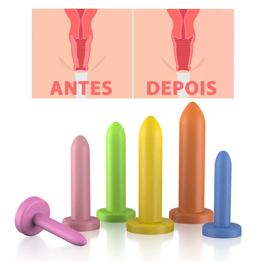 Dilatadores vaginais graduados desenvolvidos para o tratamento do vaginismo e outras indicações tais como: dispareunia (dor durante a relação sexual), estreitamento vaginal, pós-operatório e outras condições ginecológicas similares. Flexíveis, alongados, macios, fáceis de utilizar, leves e seguros, indicados principalmente nos exercícios de superação do vaginismo.