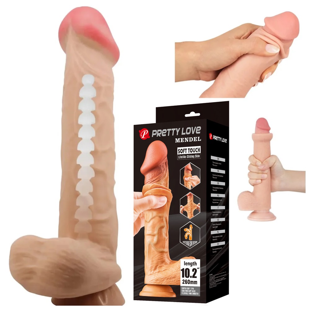 Feito de material de pele deslizante de camada dupla realista para uma sensação de vida, com tecnologia especial de dupla densidade para simular a sensação de um pênis ereto,apresenta uma pele externa macia e interna satisfatoriamente firme.