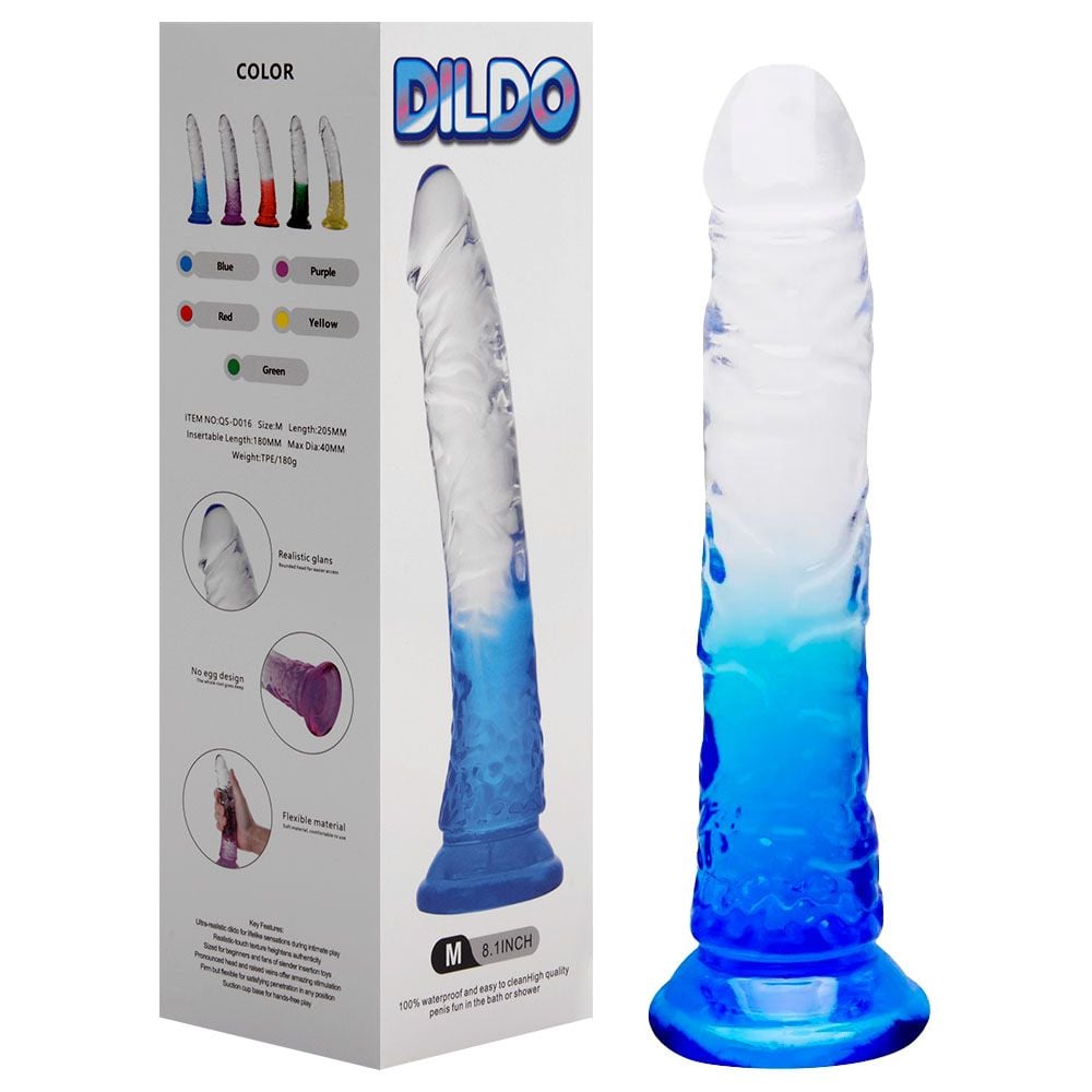 Prótese realística em forma de pênisTransparente confeccionado em TPE possui glande definida, textura de veias e ventosa para penetrações em ângulo reto.