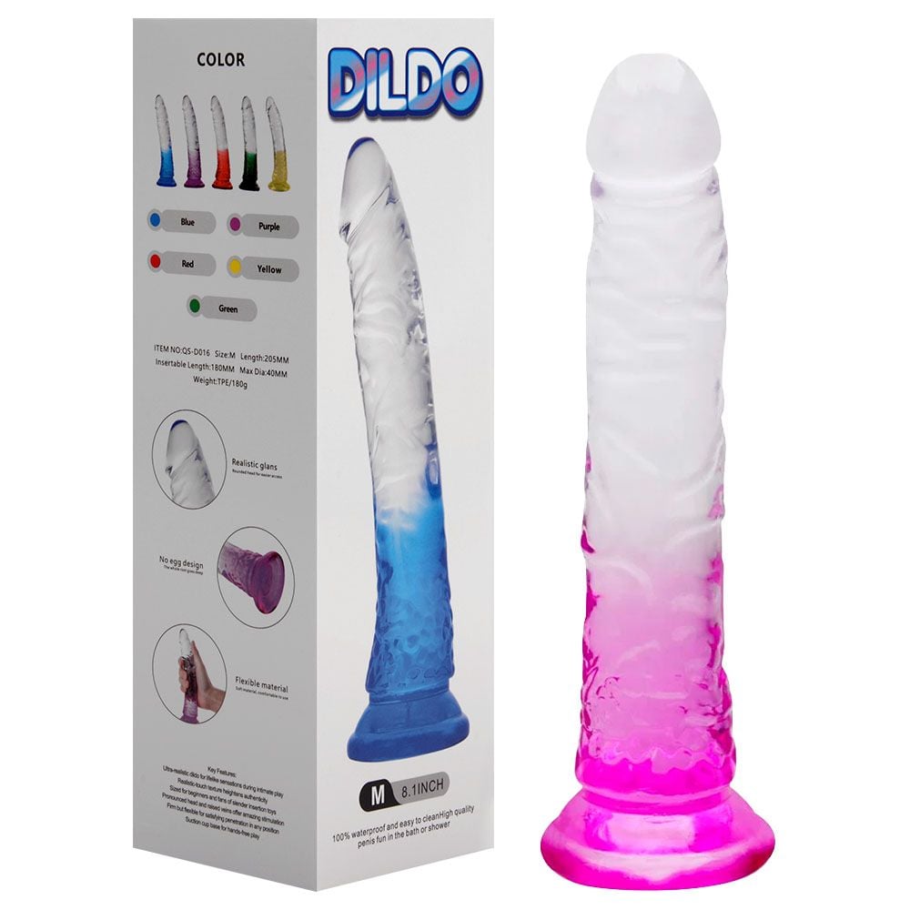 Prótese realística em forma de pênisTransparente confeccionado em TPE possui glande definida, textura de veias e ventosa para penetrações em ângulo reto.